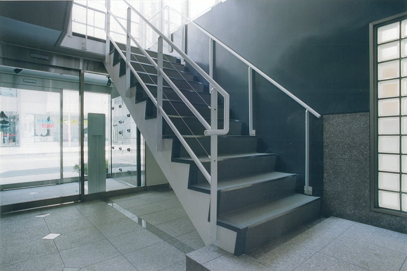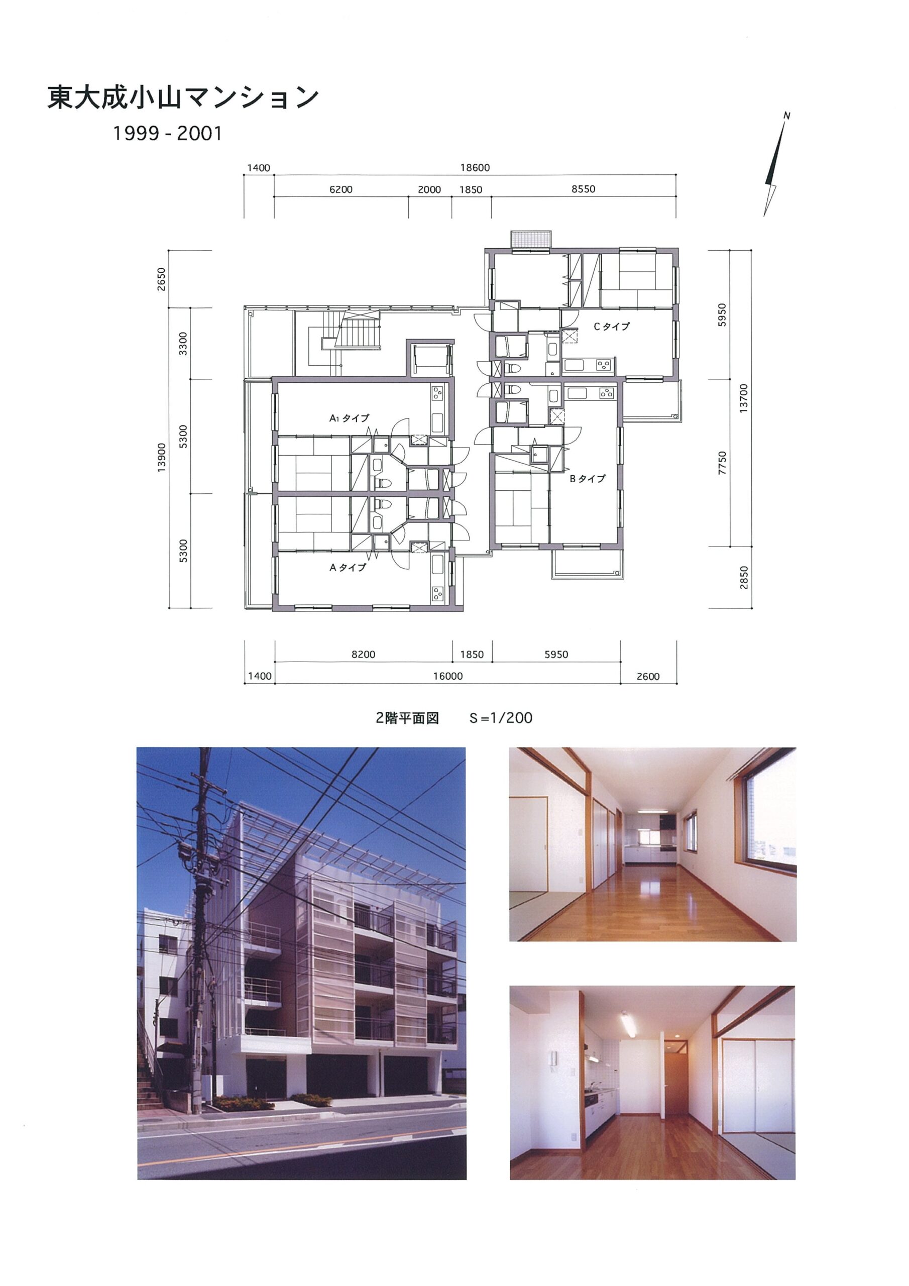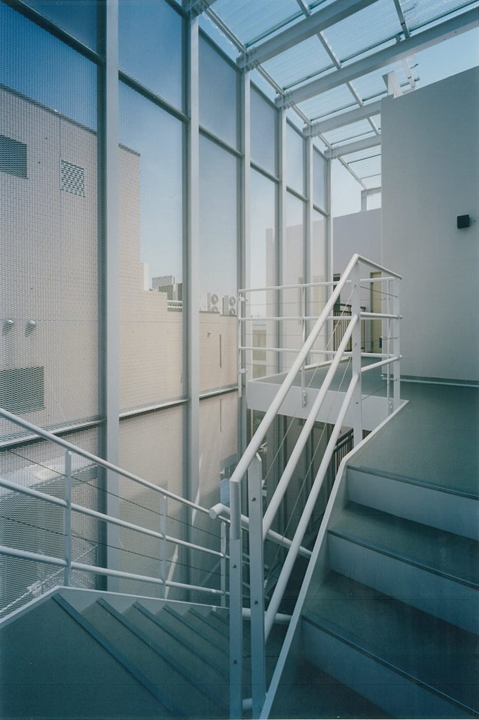 間取りは、1LDKと2LDKで夫婦世帯または家族世帯向けである。階段スペースはガラスの庇とし、エレベーター前の空間と一体の明るい場所となった。