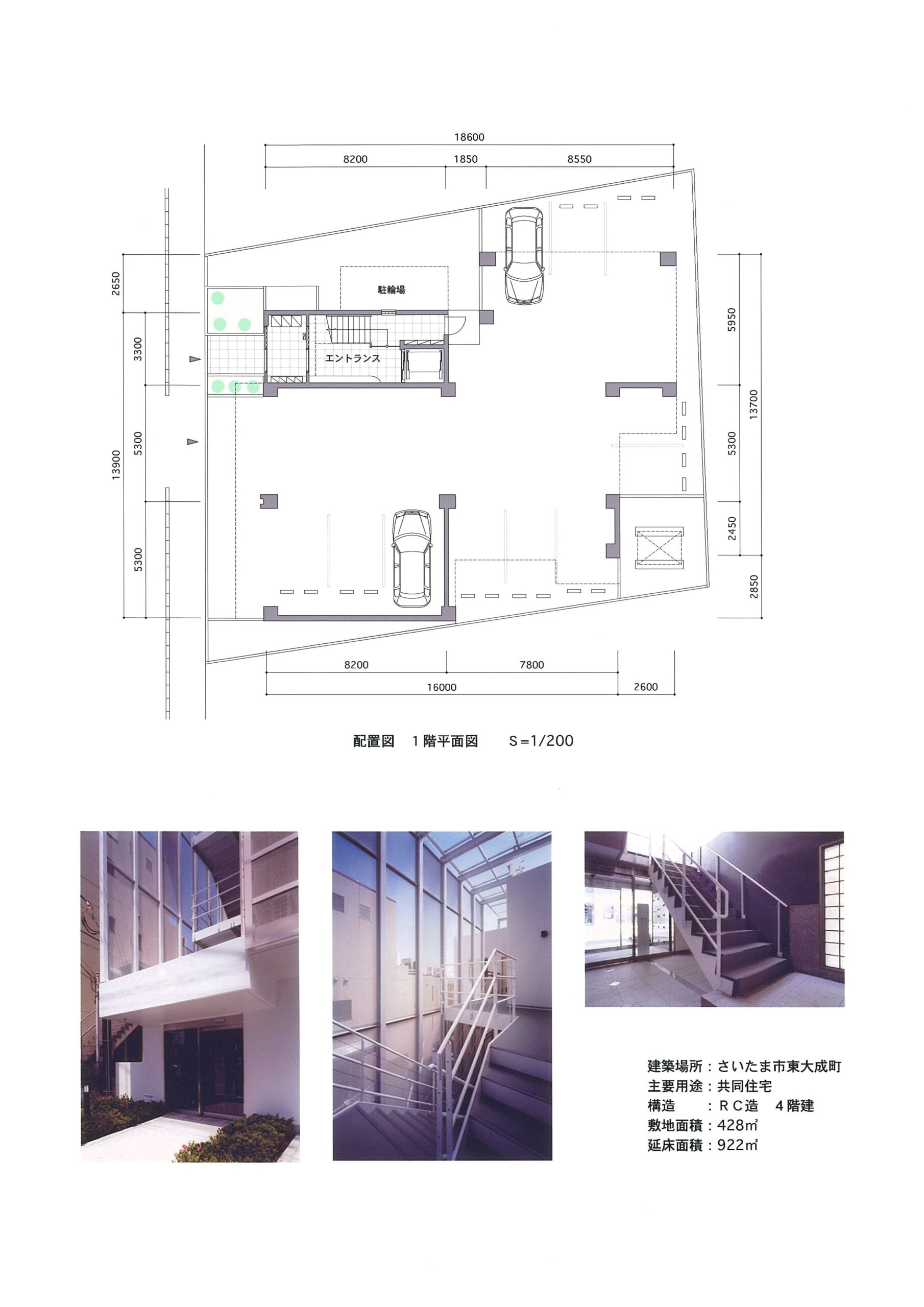 1階に駐車場12台、2~4階に12戸の賃貸住宅である。