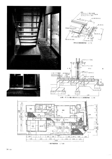 土に親しむ気持ちは、土間から小さなテラス、庭、さらに町並みへと結ばれる連続した路地状の空間に求められる。れんがを網代に張り、庭、路地と下足で往来する土間は、この家の中心であり、各部屋はそれを取り囲んで配置された。2階の居間、食堂、子供室は吹抜けにより土間と結ばれ、1階の寝室、客間も土間と庭に面し、土と緑に親しむ。浴室、倉庫、駐車場なども、作業性を考慮して土間の周囲に配置した。子供たちが飼育しているハムスターも運動場にして走り回っているようである。