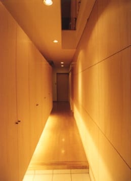 外部との連続性を大切にするため、エントランスは明確な境界を設けるのでなく、スチールの丸柱で荷重を支え、コーナーをガラスとした。また階段回りの吹き抜けの開放性を確保するため、その部分を木柱でなく、上部の梁からスチールで吊ることとした。木造を基本構造としながらも、適宜鉄骨を用い、軽やかな空間となった。