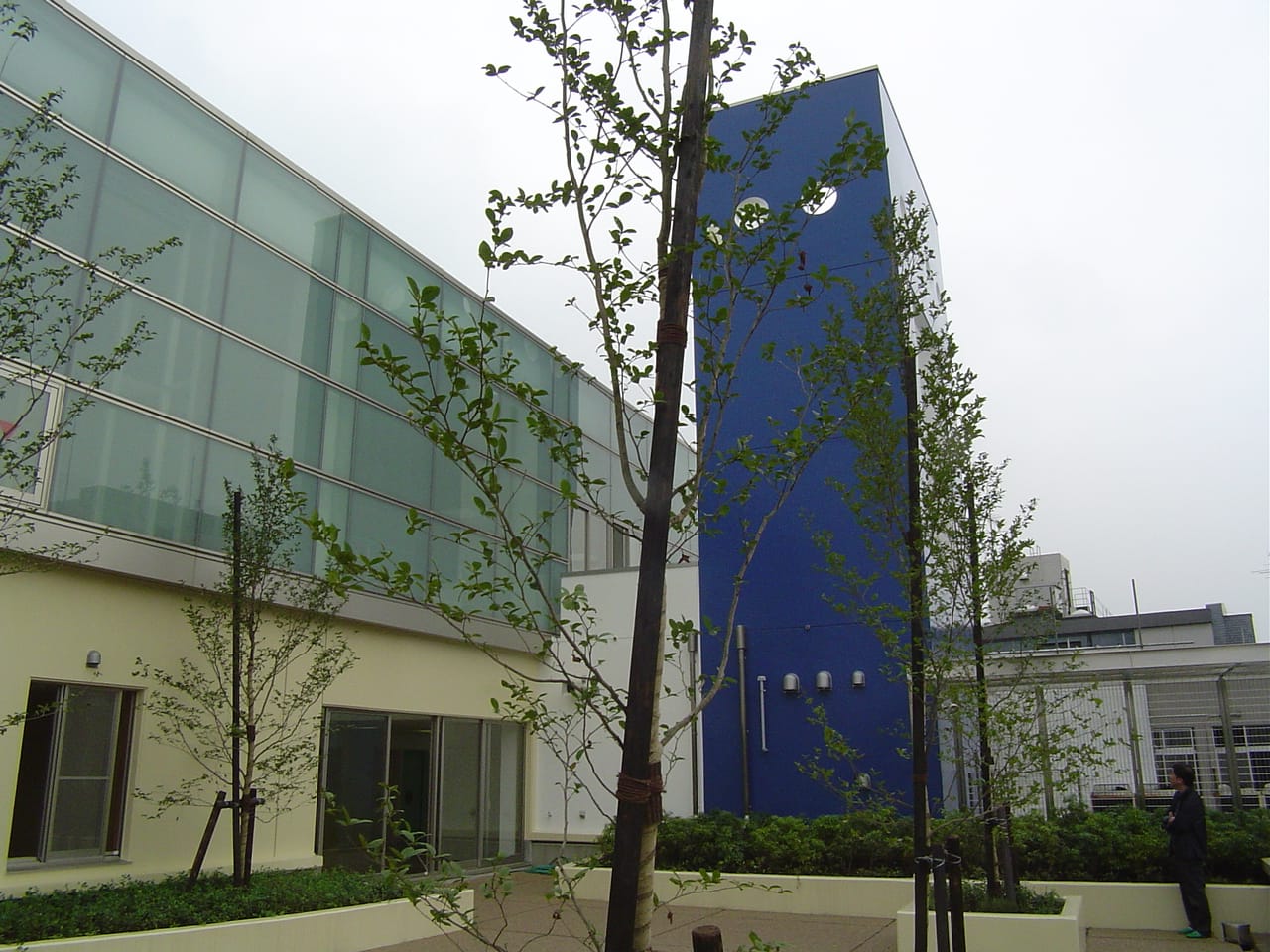 建物のイメージカラーとしては、ブルーが1位であった。この消防署が地域における一つのランドマークとなるよう、このブルーをメインにデザインしている。この建物ではさまざまな手法での緑化を施しているが、屋上庭園は、隊員の癒しのスペースとなってる。
